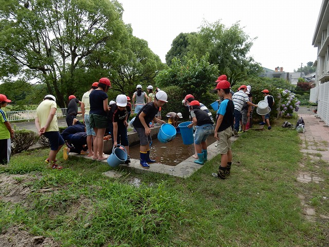 小学校で田植えの支援